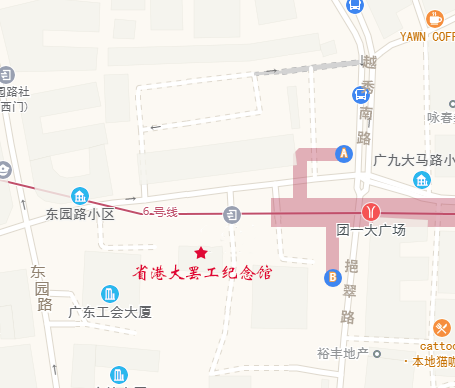 地铁6号线,团一大广场站(A、B出口),步行至省港大罢工纪念馆。